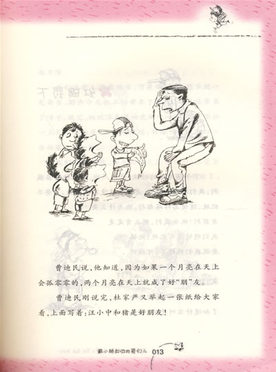1/1 戴小桥和他的哥们儿:喝汤的土匪 作者: 梅子涵,沈苑苑 年龄: 6-10岁 这是一群小孩,都刚上学,他们只要在一道,就会又奔又跑又吵又闹又哭又笑。书包玩... 梅子涵 相关图书 猜你喜欢 走在路上 中国儿童阅读(第一卷) 戴小桥和他的哥们儿:喝汤的土匪 戴小桥和他的哥们儿(升级版)——糟糕的情报 戴小桥和他的哥们儿(升级版,共5册) 戴小桥和他的哥们儿(升级版)——废话演说家 戴小桥和他的哥们儿(升级版)——逃跑的马儿 图书信息 版 权: 新蕾出版社 作 者: 梅子涵,沈苑苑 书 号: 9787530730713 出 版: 2008-3-1 更 新: 2019-01-22 07:10:02