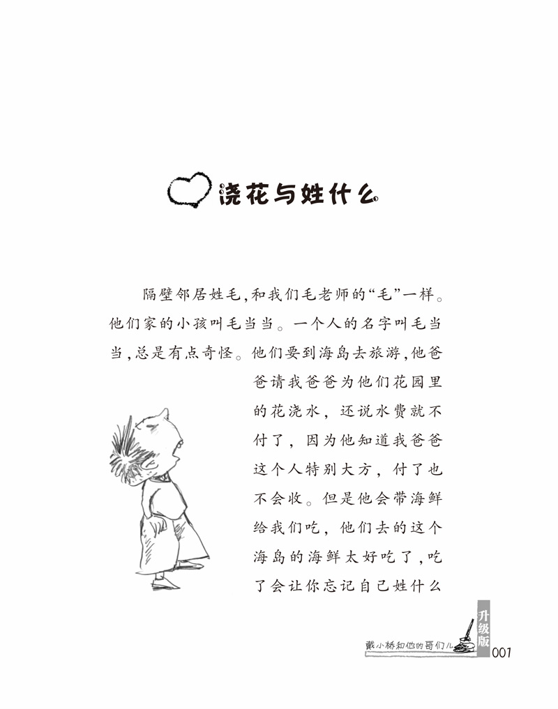 1/1 戴小桥和他的哥们儿(升级版)——糟糕的情报 作者: 新蕾出版社 年龄: 6-10岁 这是一群男孩子的故事。 他们每一天都哇啦哇啦,打打闹闹,... 梅子涵 戴小桥 相关图书 猜你喜欢 走在路上 中国儿童阅读(第一卷) 戴小桥和他的哥们儿:喝汤的土匪 戴小桥和他的哥们儿(升级版)——糟糕的情报 戴小桥和他的哥们儿(升级版,共5册) 戴小桥和他的哥们儿(升级版)——废话演说家 戴小桥和他的哥们儿(升级版)——逃跑的马儿 图书信息 版 权: 作 者: 新蕾出版社 书 号: 9787530760277 出 版: 9787530760277 更 新: 2019-01-03 07:10:25