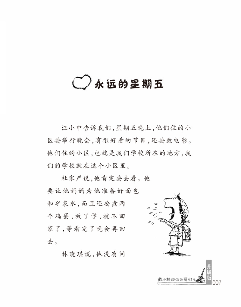 1/1 戴小桥和他的哥们儿(升级版)——逃跑的马儿 作者: 年龄: 6-10岁 这是一群男孩子的故事。 他们每一天都哇啦哇啦,打打闹闹,来回奔跑... 梅子涵 戴小桥 相关图书 猜你喜欢 走在路上 中国儿童阅读(第一卷) 戴小桥和他的哥们儿:喝汤的土匪 戴小桥和他的哥们儿(升级版)——糟糕的情报 戴小桥和他的哥们儿(升级版,共5册) 戴小桥和他的哥们儿(升级版)——废话演说家 戴小桥和他的哥们儿(升级版)——逃跑的马儿 图书信息 版 权: 作 者: 书 号: 9787530760079 出 版: 更 新: 2018-06-19 07:10:19