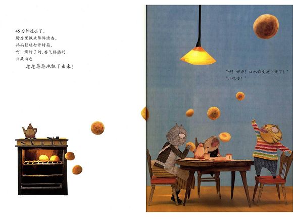 这本书我在网上幼儿绘本推荐里基本没有看到过,只是偶然在一个妈妈的博客上看到推荐,说她的女儿非常喜欢,每天晚上都读好几遍,我相信这种有亲身体会的推荐,所以我为女儿也购买了这本《云朵面包》。