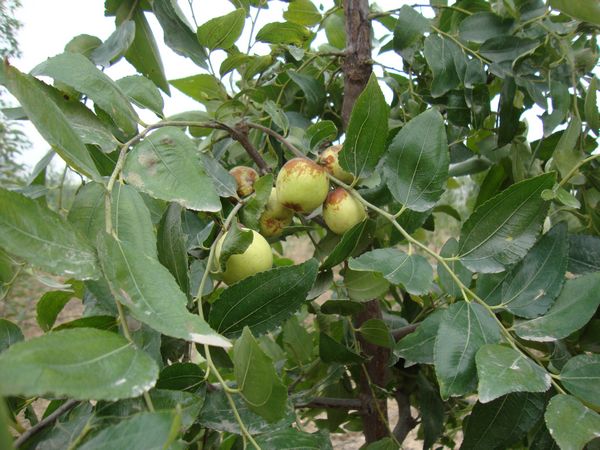我们去的是附近的一个大枣园。枣园很大,风景也很美,但是由于枣树是刚种上2年,再加上没有怎么好好管理,大枣接的也不是很多。其实,枣结的多不多无所谓了,能找到这么个地方,真是太开心了。下面,给一棵枣树来个特写吧,远远的望去,这些枣儿是不是也很诱人呀!不管怎么样,应该是纯天然的绿色食品呀。