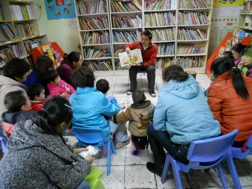 故事环节,棉花糖叔叔首先讲了绘本——《猜猜我有多爱你》,然后与妈妈们探讨这个大兔子与小兔子之间的关系,妈妈们普遍认为是妈妈与宝宝,棉花糖叔叔给出了自己独特的想法,大兔子也许是妈妈也可是是爸爸,也可以是爷爷或奶奶,总之,可以是比小兔子年长的任何一只兔子。