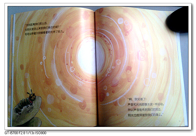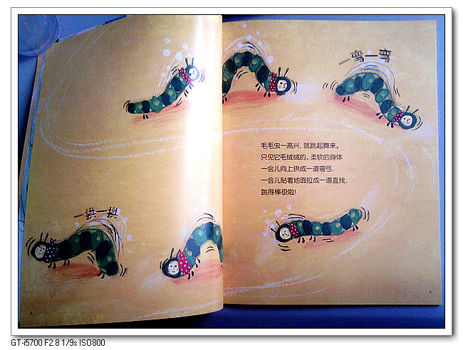 《波波波》是《幼儿科学绘本》第四辑《物理篇》中的一本。将水波、声波、光波……通过一个有趣的故事联系在了一起,是怎么联系的呢?你一定想不到,是通过一条可爱的毛毛虫。好好看看毛毛虫的动作(宝宝对毛毛虫也算比较熟悉了,在《好饿好饿的毛毛虫》和《一寸虫》中都有过了解)。