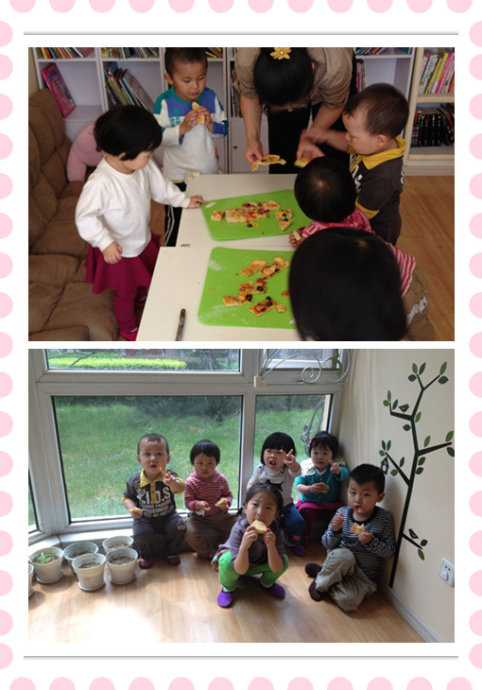 看到自己亲手做的pizza迫不及待的分享给小朋友们,当然还会把最好的那一块给亲爱的妈妈