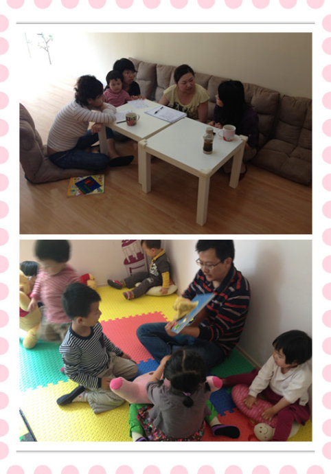pizza大餐结束后,孩子们围着亲情加盟的故事爸爸听故事,妈妈们一起喝着咖啡畅谈!
