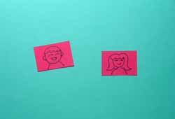 4. 彩色卡纸剪成小块状,在上面画上人物的头像。