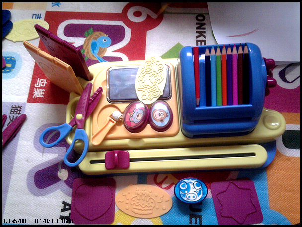 创意礼品制造机,名字听起来很炫,呵呵,其实主要是锻炼宝宝动手能力,自制贺卡之类的。里面很多东西我家里其实都有,不过这个产品把这些东西集中在一起,而且颜色这么漂亮,还是让我没有控制住。