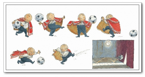 一个淘气的男孩,追着足球跑进了古老的剧场,调皮的孩子在剧场的杂物堆里翻腾着,知道他找到了一个斗篷穿上,然后足球引导他穿过幕布,进入故事。看书的时候,我以为斗篷是故事的关键,读了导读才知道,墙上的钟才是一个不可忽视的道具,而且对于下午四点这个时间,也有其特殊意义。