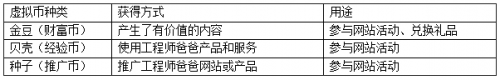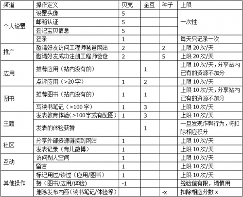 目前工程师爸爸共有三种积分币种,分别是:贝壳、金豆、种子,获得方式和用途如下所示: