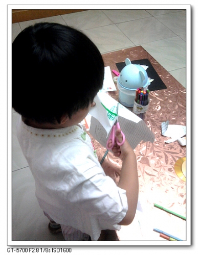 这是后来婷自己剪的窗花、搓的纸绳。婷会搓纸绳了,哪天我们就可以做纸绳画了。