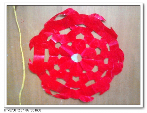昨晚回家,婷让我看她画得一堆彩色的花,很漂亮。忽然想起以前看的一个手工,开始动手。