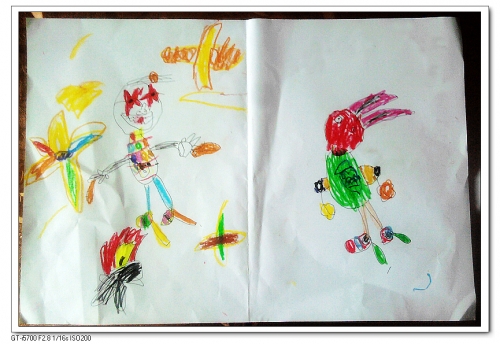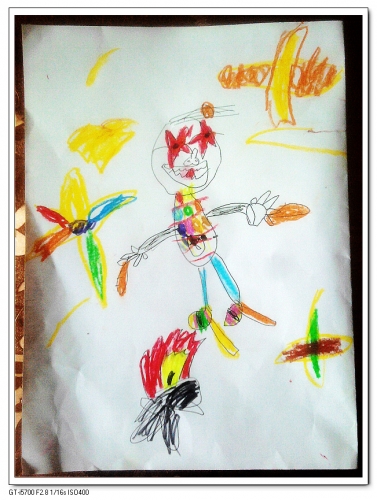 婷年纪不大,理想到不少。从最初的篮球运动员、宇航员,到警察、老师。我邀请她画一下自己的理想的时候,她却画出了下面这幅画——明星大厨。