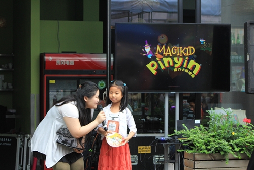 在音乐表演间隙,“魔力小孩”主创人员在现场展示了2013年3款全新App: 《魔力小孩拼音》、《魔力小孩数学》以及《魔力小孩英语》,并邀请小朋友现场试玩体验,非常难得的是这三款iPad上的应用程序连续三周获得苹果App Store的首页新品推荐。