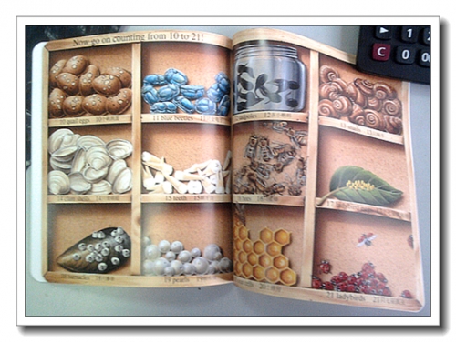 书重点介绍是从1-0,后面集中介绍了11-20,鹌鹑蛋、藤壶、缀锦蛤,稀奇古怪的东西一格格收藏,正好前一段时间看了一个创意,说是孩子们喜欢收集乱七八糟的东西,可以做一个这样的框框,让他们把自己的“宝贝”收藏,又整洁,又有纪念意义。
