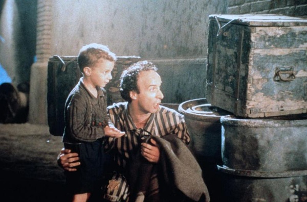 然而好景不长,法西斯政权下,圭多和儿子被强行送往犹太人集中营。多拉虽没有犹太血统,毅然同行,与丈夫儿子分开关押在一个集中营里。聪明乐天的圭多哄骗儿子这只是一场游戏,奖品就是一辆大坦克,儿子快乐、天真的生活在纳粹的阴霾之中。尽管集中营的生活艰苦寂寞,圭多仍然带给他人很多快乐,他还趁机在纳粹的广播里问候妻子:“早安!公主!”