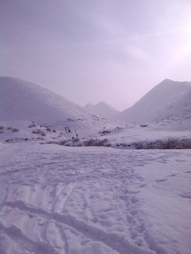 在山里,没有去别人开办的滑雪场,在山后,找到一个稍微平缓的小坡,淡淡的阳光照在身上,暖暖的。