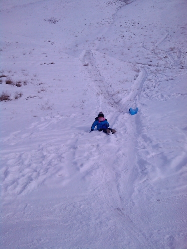 总结:1、一定要穿靴子,给孩子穿的短靴,鞋口老进雪,回家后立刻缝了防雪利器,如果效果好,再拍图片来“显摆”,哈哈。2、一定要带好口罩、围巾,没人滑过的雪道,滑下来免费洗脸了。
