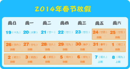 2014年春节放假通知