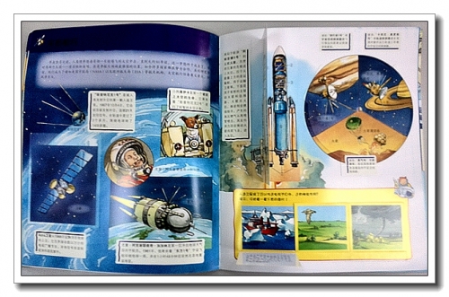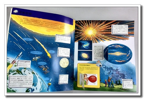 书里面的内容很丰盛,介绍星球、星系、空间、宇宙航行,对地球和月球进行了着重介绍,同时还可以衍生一些小试验,比如磁铁的南极和北极、太阳照射地球的方位、月亮的阴晴圆缺变化,都需要我们在孩子一边阅读的同时,一边实践,已使他们加深理解。