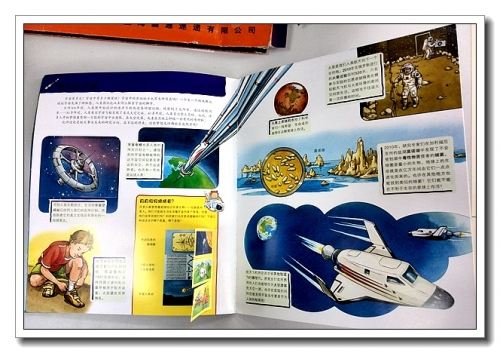 再翻开,就开始间或出现翻页了,书里的翻页设计很巧妙,有的是在星球后隐藏知识,有的是在飞船下隐藏结构。