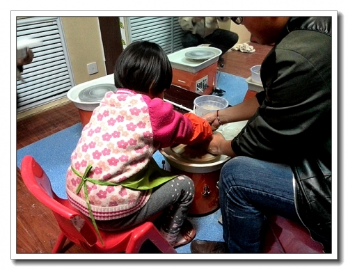 带宝宝去做了一次泥陶,其实像她这么大的孩子,掌控力不行,还不能自己制作,但是婷一直叫着要玩,终于还是满足了她的愿望。