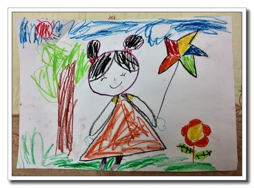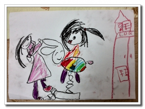 婷的好朋友戴着耳环,婷也想要,我不同意,于是她在画面里实现自己的愿望。