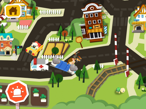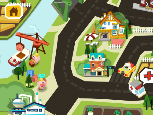 游戏展示的是一个小小城镇,孩子们可以不仅可以认识到警车、消防车、救护车等各种各样的车,还可以看到货轮、火车等交通工具。小朋友们可以点击它们在城市里自由探索,发现各种隐藏的小惊喜哦!