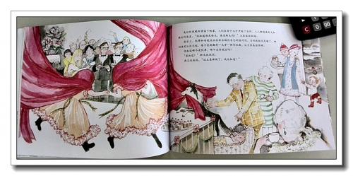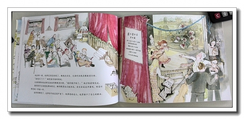 画风很淡,也很细腻,凯蒂的那件公主裙,我也很喜欢。书里有许多的小细节:凯蒂跟妈妈说想表演的时候,利亚姆不见了,他藏在哪儿?利亚姆在凯蒂表演的时候不见了,他藏在哪儿了?表演之前发生了糟糕的事情,是什么?看演出竟然还有抽奖活动,奖品有什么?都需要认真地寻找和思索。