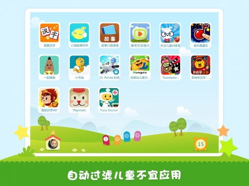 儿童桌面采用大图标设计,更贴合宝宝的审美,大幅度减轻视觉上的压力