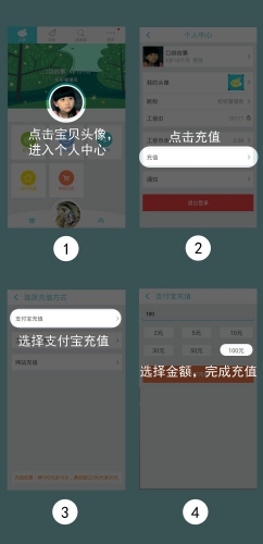 工爸币的充值支持四种方式——话费、支付宝、工爸充值卡、网站端充值。