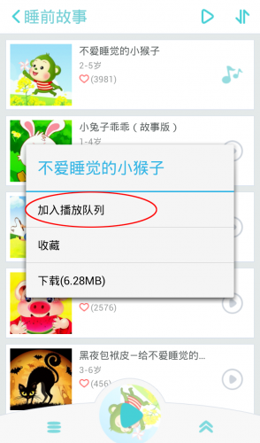 一、如何把故事添加到当前播放队列?