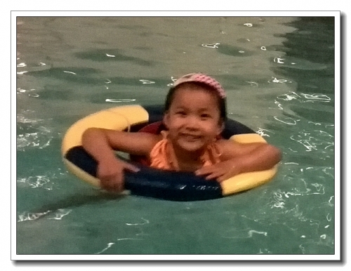 周日带婷去游泳,激动得一中午都没睡觉。是婷第一次下水,但初生牛犊不怕虎,或者说无知者无畏,开心得很,还要求不带游泳圈,还要求像嘉一姐姐那样,让我把钥匙扔水里,她去捡。哪敢?玩儿得都不想离开。问过游泳班,要7周岁才收,还问过一个,也是只收6岁以上的,太小的孩子,似乎不原意教呢。
