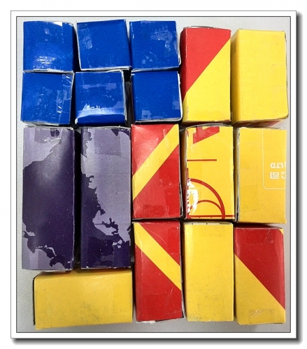 因着看到有试读《立体王》的书,就去百度了一下,找到了电子书,打开看看,工具很好自制。又看到有人说打印出来的比例貌似失调,所以做成的方格会变,所以很多人是tb上买了积木块,不贵(但邮费到我们这里不便宜),可是家里的垃圾(玩具不玩就是垃圾啊)已经实在太多了,犹豫再犹豫,看到手头的快递袋,还是自制了。找了个别人绘制好的图形,打印在A4废纸上,贴在快递袋上剪下来,用胶纸带粘好。想到有人说不稳的问题,根据老公以前的建议,往里面塞了满满的卫生纸。特意用不同颜色的袋子制作,很漂亮,有点积木的感觉吧,话说我后来都有点折盒子上瘾了。黄山带回来的小吃盒子,正好收纳。