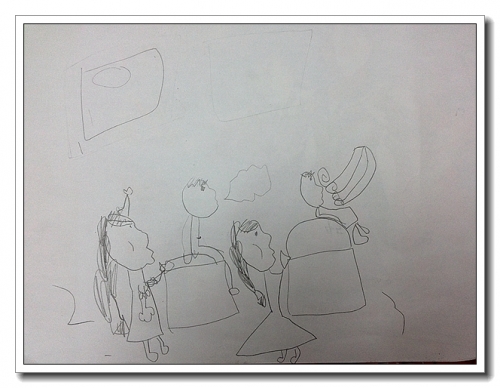先做的是吹塑料袋抬人。找一个塑料袋,婷坐在上面,然后我往里面吹气,塑料袋膨胀,婷被抬了起来。让婷把实验过程绘制了个记录。