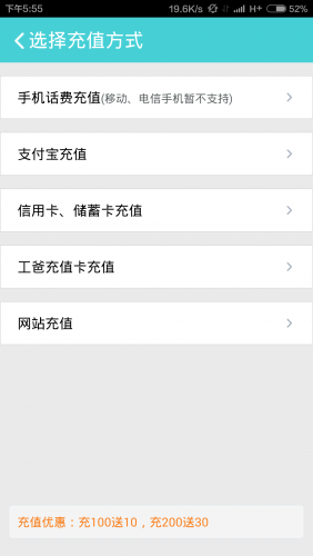 工爸币充值:在充值页,点击“充值”后,支付方式选择“信用卡、储蓄卡充值”。