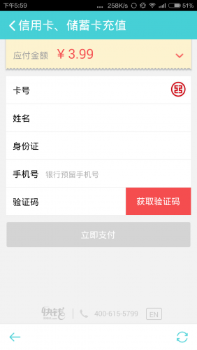 3、输入卡号、密码、手机号、验证码等确认信息,确保支付安全性。