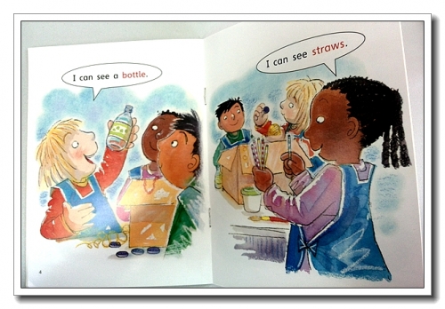 预备级感觉适合3-6岁的儿童,里面的句型比较简单,每一册的单词也并不多,但35册下来,还是能积累许多的。采取的是小故事的形式,虽然每册只有8页纸,却讲述了一个个小小的生动的完整的小情景,有些故事的最后还很有点“抖包袱”,给人出乎意料的一幕,让大人也看得津津有味。