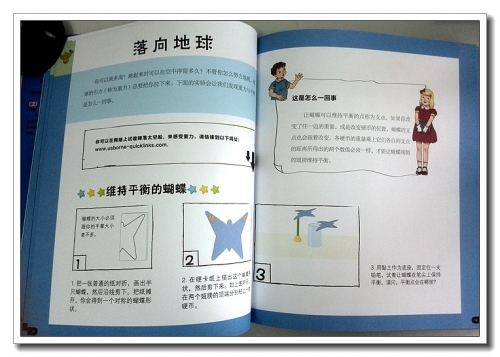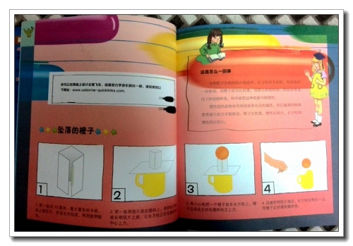每个实验有文字介绍,也有图片示意,有科学解释,比较特殊的,是书里推荐了一个网站,可以在线作各式各样的游戏或实验,英文的。书中的每个实验对应一个网址,做完了书上的,可以到网站上去试试新的体验。
