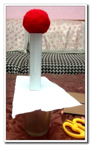 婷爸是个比较严谨的人,严格按照书上的要求量纸张的长宽,细心得折叠,把我看得那个着急,起身找了个硬纸盒片代替明信片,可是实验了几次,结果却不是特别好。绒球老是滚出来,婷也差点失去了耐心。