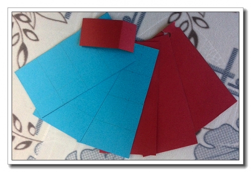 这个东西做起来也简单,婷看我做了一次,就学会了。三张纸片,两张对折,背靠背放,一张当底儿,可以粘在一起,也可以用橡皮筋,我手头只有曲别针,而且我为了拆得方便(不占地方),就用它了。做成圆形会更好看,但我何止是懒得剪圆形了,甚至各个长方形都长宽不一样,反正也不是为了好看。