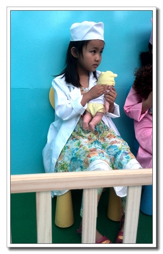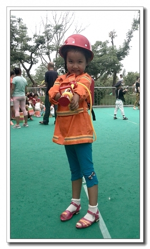各种职业的衣服试了试,当年我的梦想是当警察,而婷最想要扮演的是医生,照顾小宝宝,排了好一会儿队。她不肯穿建筑工人的衣服,说那是男孩子干的工作。邮递员特别简单,就是把一封信送到指定的地点去,小孩子们却都最喜欢这个环节。