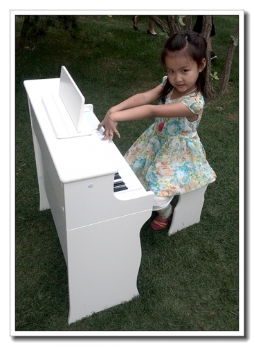 婷不喜欢乐器,家里的玩具口琴、木琴、电子琴、吉他倒是经常瞎拨拉,但每次说报课都拒绝。这次去参加活动,倒是每样乐器都上手玩了半天。