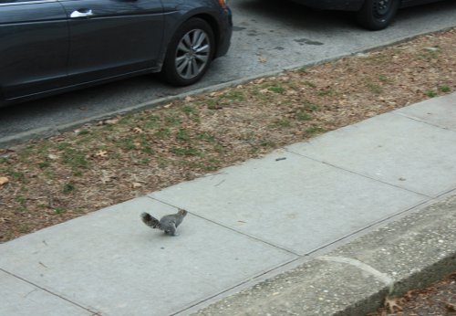 马路上,一只正练习袋鼠跳的松鼠
