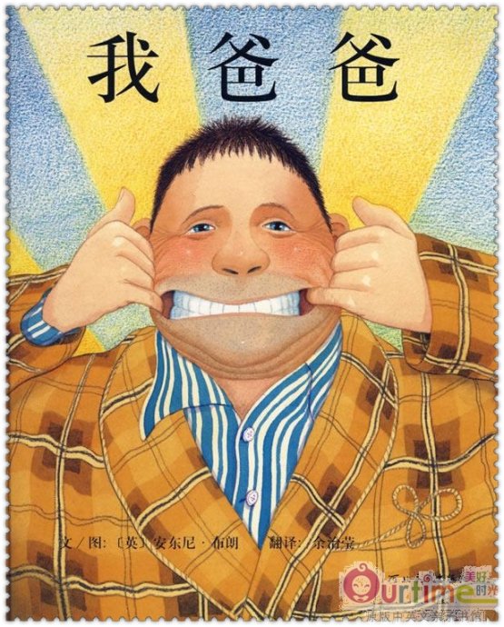 国际级图画书大师安东尼. 布朗创作的偶像爸爸形象。在同一作者所作的另一本姊妹篇《我妈妈》中,一颗“爱心”贯穿于整本书中,每一篇几乎都有妈妈的爱心;而在《我爸爸》中,“太阳”则隐藏在书中的每一处细微之处——爸爸背后的墙上贴着一幅画着“太阳”的画;大野狼灰溜溜逃走时门上也出现了太阳;就连爸爸的睡衣纽扣也是小太阳的……原来作者在暗示我们:“爸爸”是宝宝心中的“太阳”!