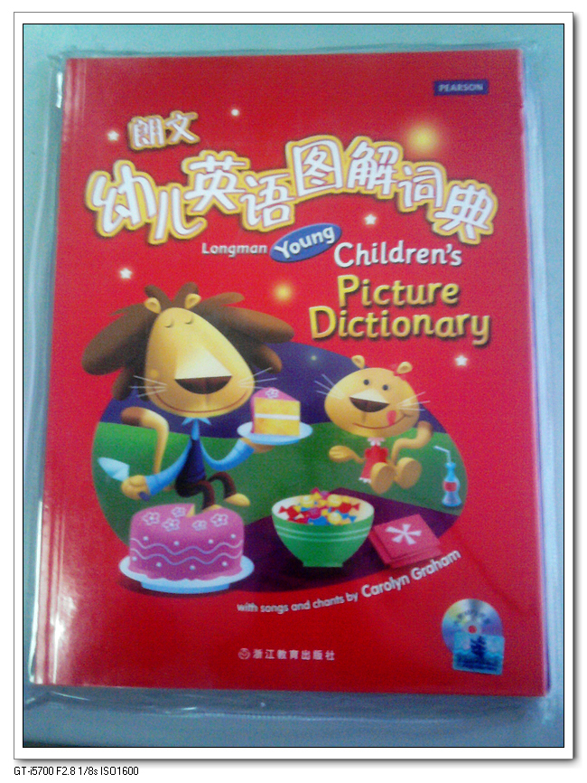 宝宝对英文单词挺敏感,老是问我这个怎么说,那个怎么说,我不会,只好给她买了《朗文幼儿英语图解词典》——这书很畅销啊,好几次断货,是几经周折才买到的——如果不是为了买它,京东那单我就不下了。让她自己学习吧(我做成了点读书,她可以自己听)。