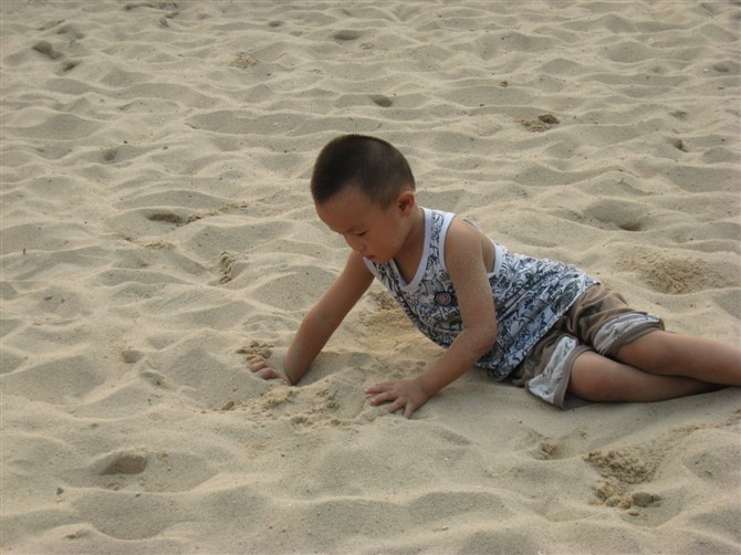 作者:康妈 发布时间:2012-8-22 17:48儿子还没去过海边,没能玩过海边的沙滩。此次济南行来到小妹家,听说离家比较近的森林公园有沙滩,很多孩子都去那里玩,这样的好机会一定不能错过。