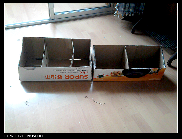 其实这个网上蛮多的教程,我家是比较节约材料,一个纸箱子做了俩,所以发上来晒晒,呵呵。