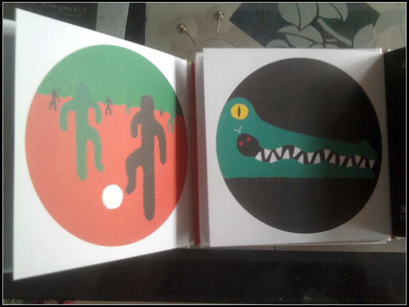 这两幅图也是我很喜欢的,几个少年在踢球(为啥是少年?少年才有希望啊,难道你希望是国足?);黑夜的衬托下,鳄鱼先生龇着他锋利的牙齿,黄色的眼镜、黑色的一条线似的瞳仁,漠然而冷酷。