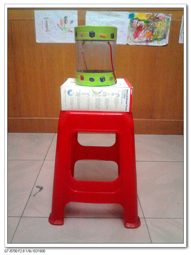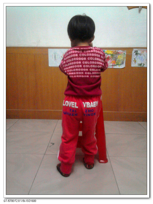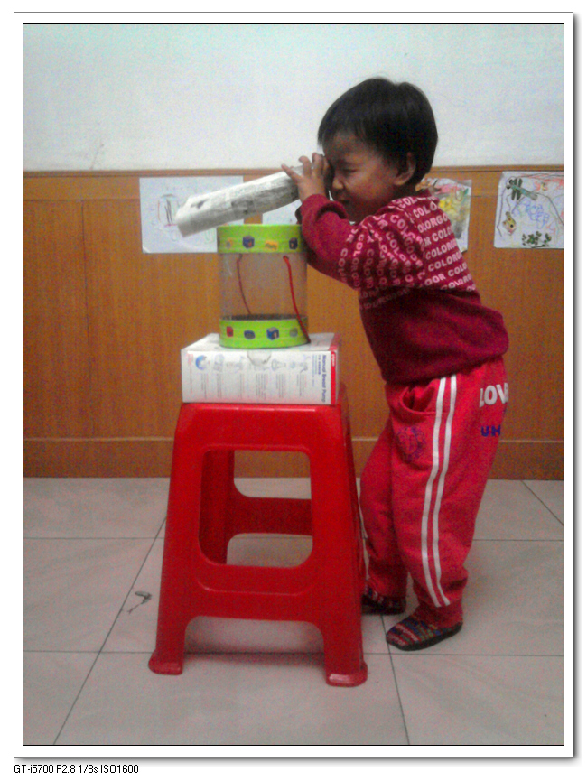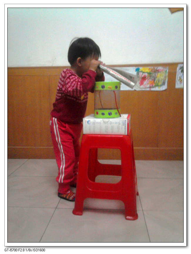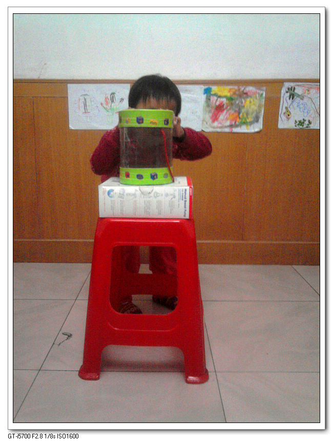 前天晚上,我正在洗碗,忽听得老爸老妈畅快大笑,跑过去一看,原来是宝宝在给他们“照相”。使用的是她自制的超大超先进的专业设备,还自备三脚架。我们说这分明是四脚架嘛,宝宝说,跟姥爷用的那个一样,三脚架。