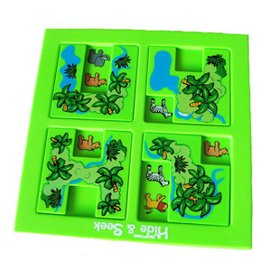 这个玩具有很多关,目标就是按照说明书上给出的,用这些不同几何形状的卡盖,通过方不同的区间,调转不同的方向来实现露出指定的动物及数量。